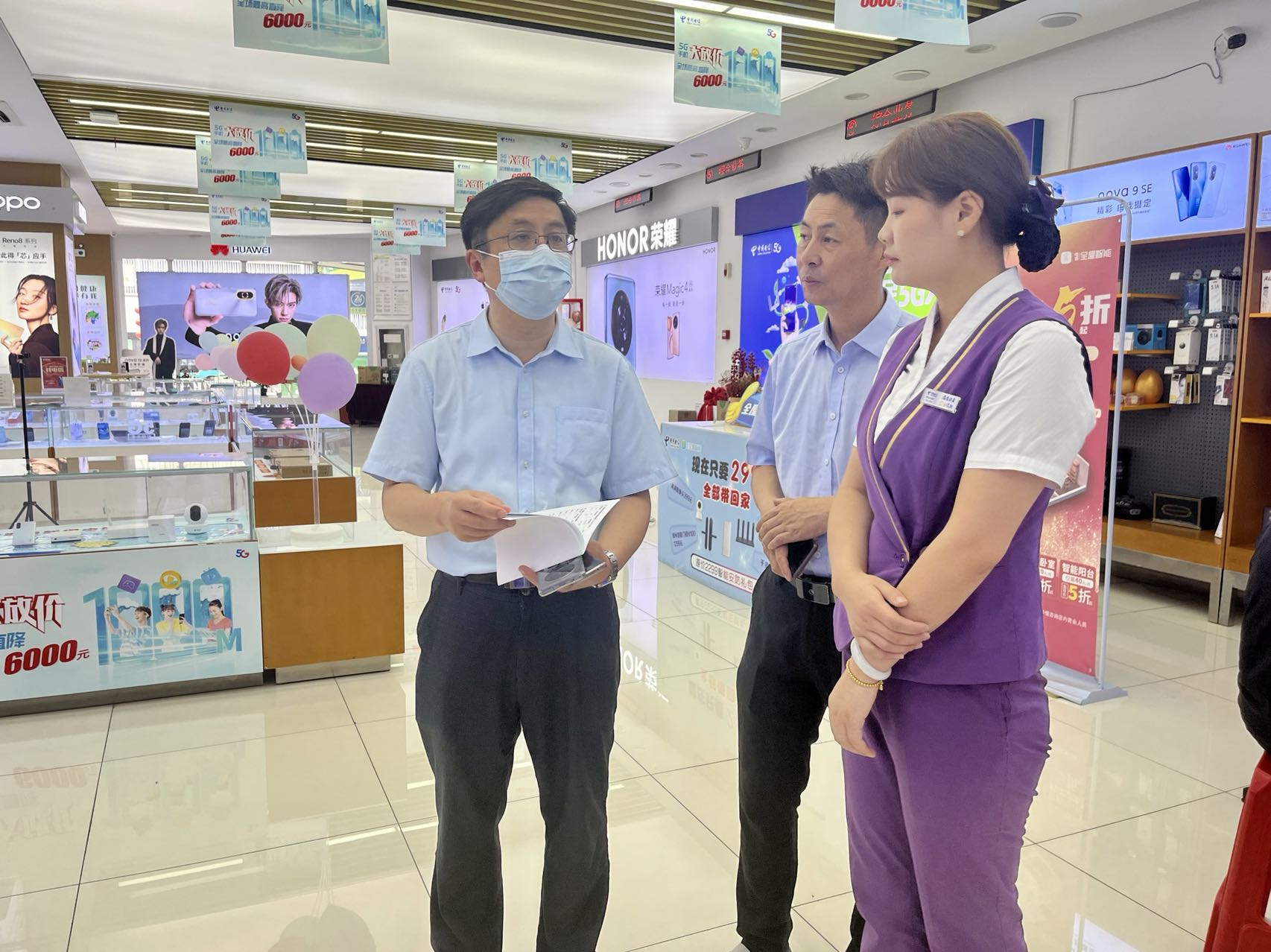 6月29日上午,李庆坤带队实地检查了当地四家电信运营企业的营业厅,重点了解营业网点的服务质量、资费公示、精准降费政策落实等情况,并与一线工作人员进行了详细交流。针对检查中发现的问题与存在的不足,检查人员现场反馈给营业厅负责同志,并提出了改进要求和意见。