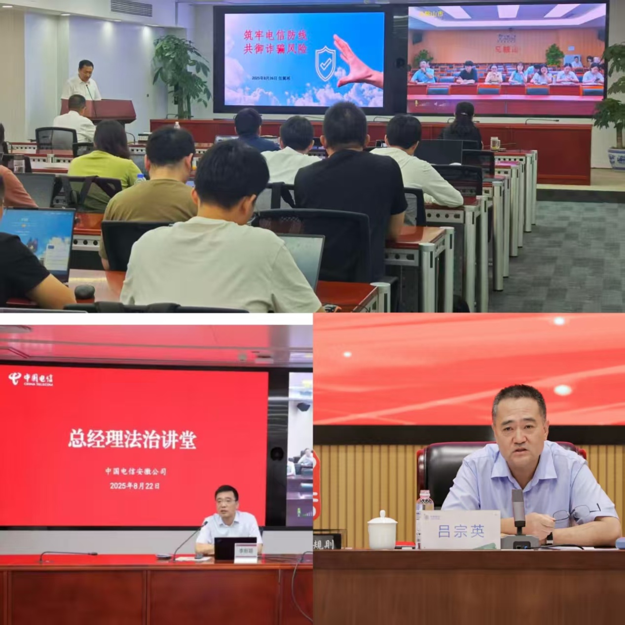 8月份安徽电信、安徽移动分别开展总经理法治讲堂活动和“总经理讲法治”专题报告会。安徽电信党委书记、总经理李新颖以视频会议形式,面向全省各级单位作《深入学习贯彻习近平法治思想,推进依法治企与合规经营,保障企业高质量发展》主旨授课;安徽移动党委书记、董事长、总经理吕宗英亲自授课,推动法治理念直达基层末梢。