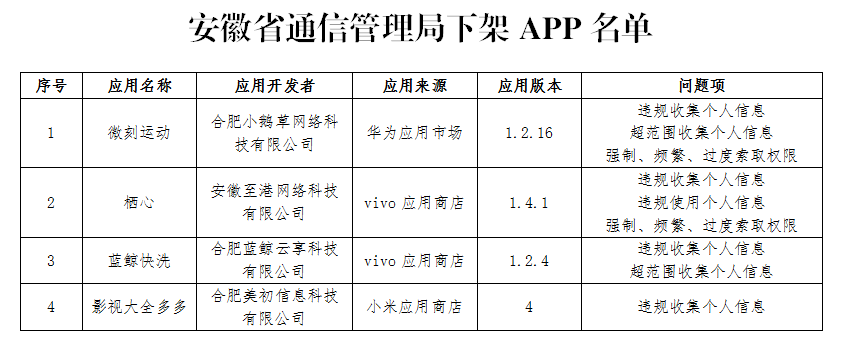 安徽省通信管理局关于下架4款侵害用户权益APP的通报